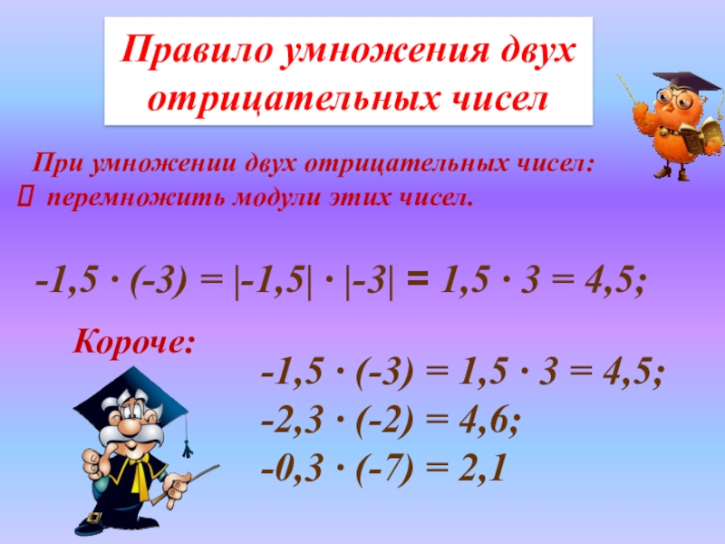 -1,5 · (-3) = |-1,5| · |-3| = 1,5 · 3 = 4,5;