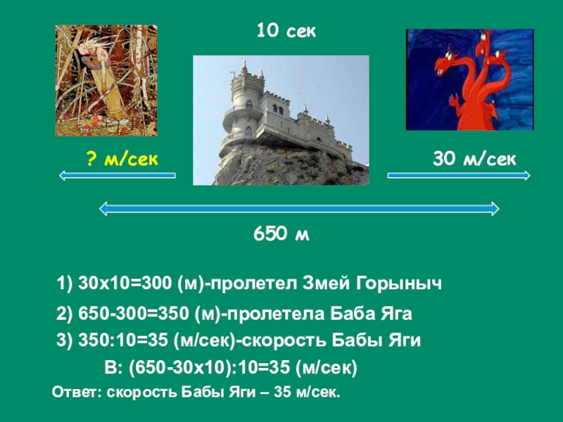 Ответ: скорость Бабы Яги – 35 м/сек.