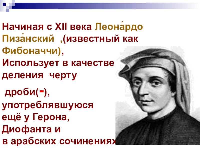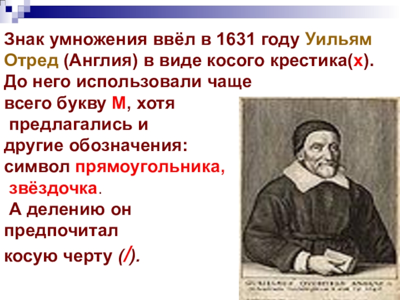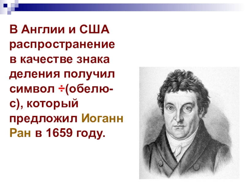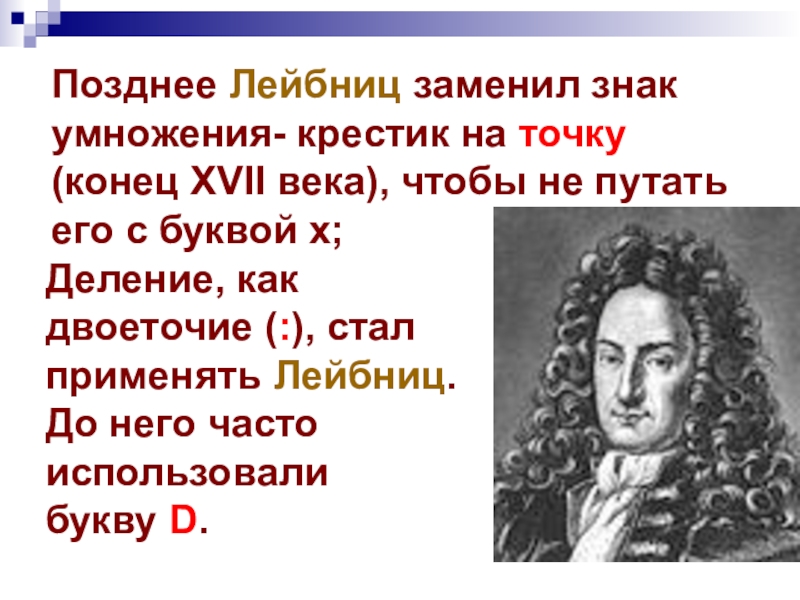 Деление, как двоеточие (:), стал применять Лейбниц. До него часто