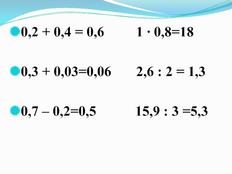 Слайд 50,2 + 0,4 = 0,6 1 ∙