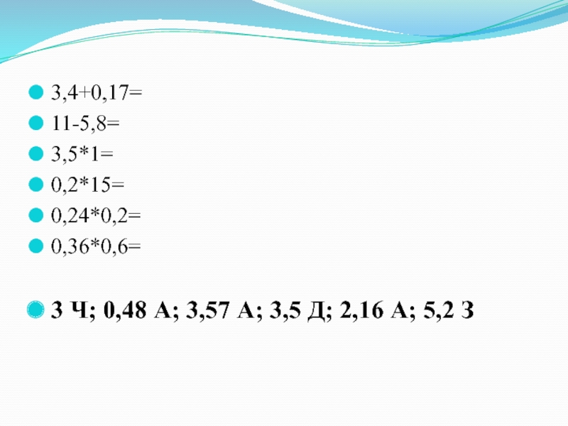 3 Ч; 0,48 А; 3,57 А; 3,5 Д; 2,16 А; 5,2