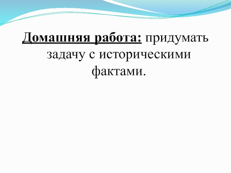 Слайд 17Домашняя работа: придумать задачу с историческими фактами.