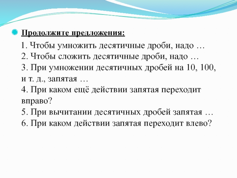 3. При умножении десятичных дробей на 10, 100, и т. д., запятая …