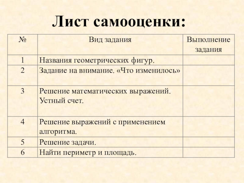 Лист самооценки: