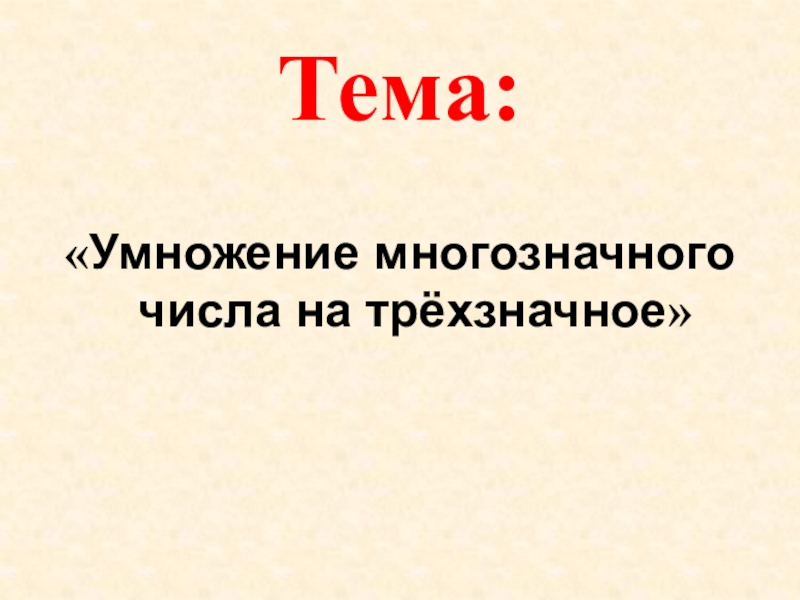 Тема урока: «Умножение многозначного числа на трёхзначное».