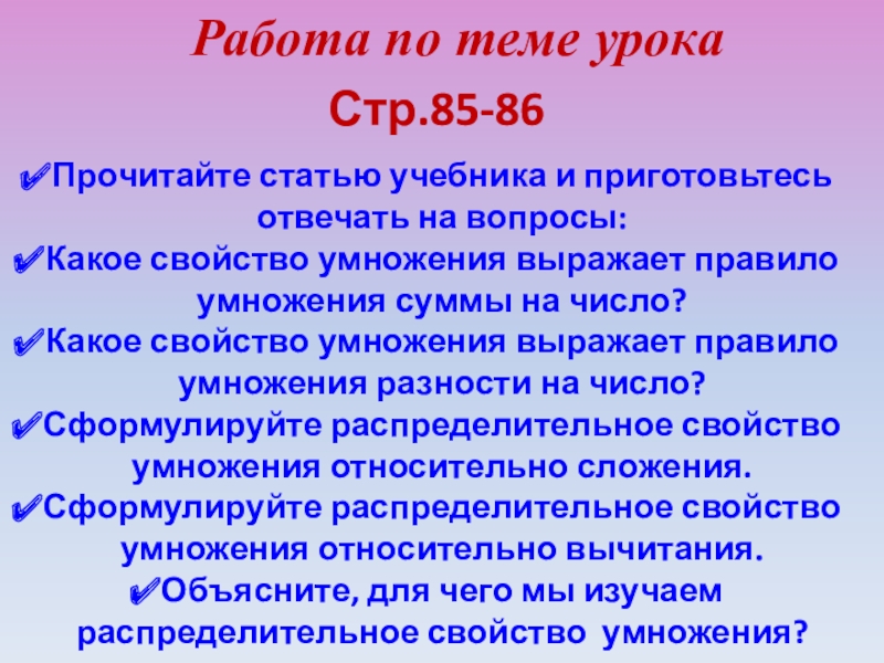 Работа по теме урока