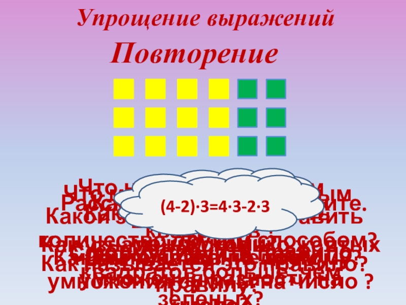 Как узнать, на сколько желтых квадратов больше, чем зеленых?