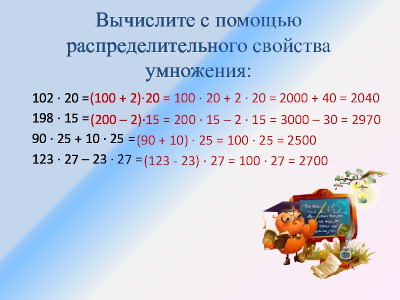 (100 + 2)·20 = 100 ∙ 20 + 2 ∙ 20 =