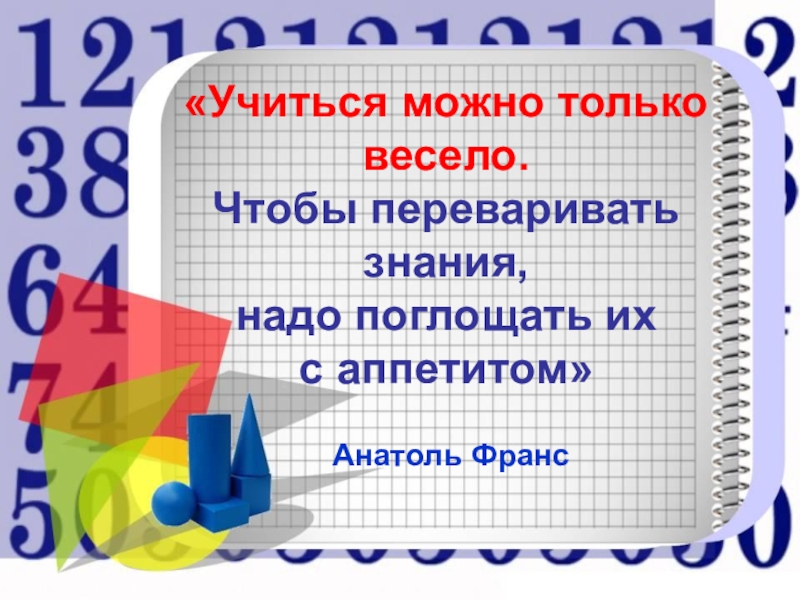 «Учиться можно только весело. Чтобы переваривать знания, надо поглощать их с аппетитом»Анатоль Франс