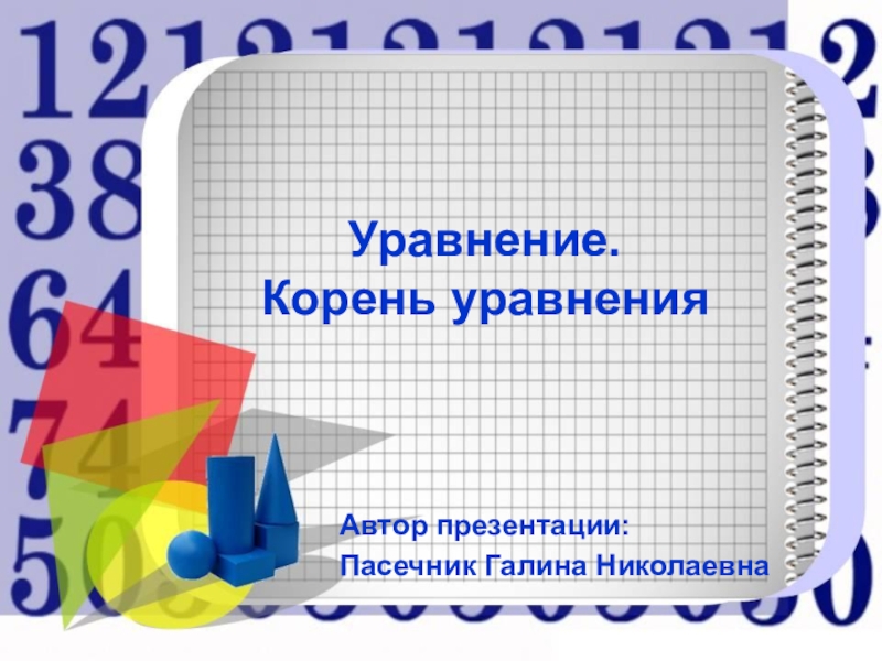 Уравнение. Корень уравненияАвтор презентации:Пасечник Галина Николаевна