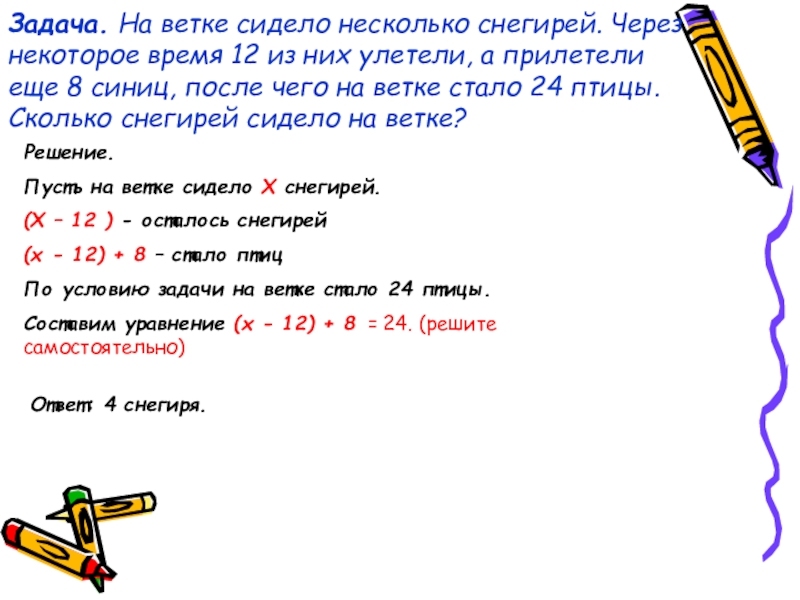 Составим уравнение (х - 12) + 8 = 24. (решите самостоятельно)