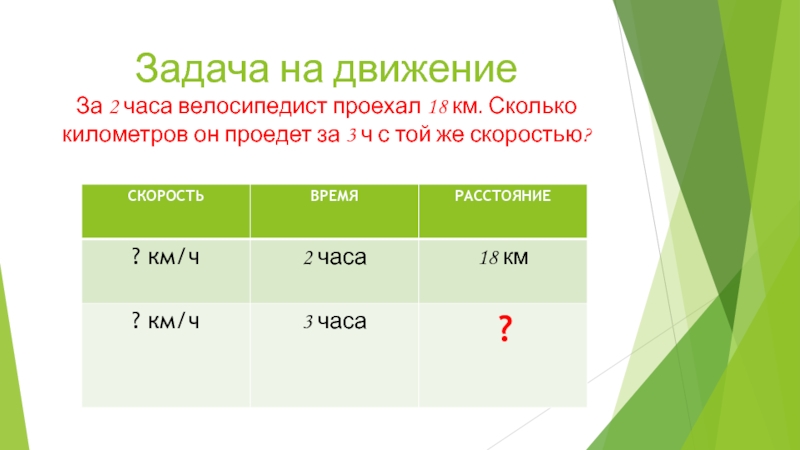 1) 18 : 2 = 9 (км/ч) – скорость;