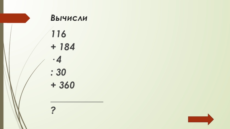 Вычисли 116+ 184· 4: 30+ 360___________?