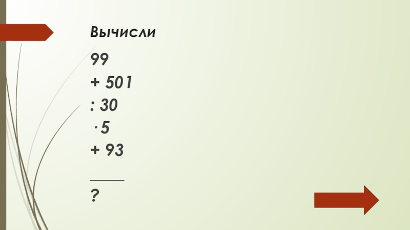 Вычисли 99+ 501: 30· 5+ 93____?