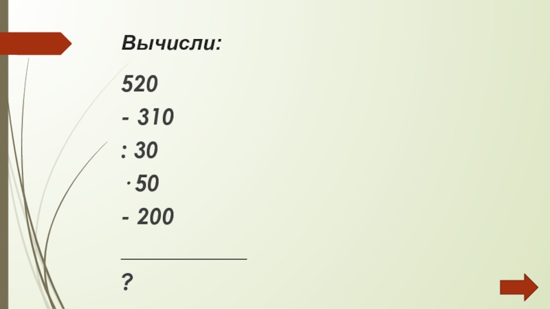 Вычисли:520- 310: 30· 50- 200___________?