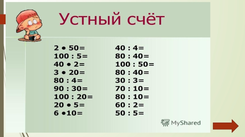 Презентация, доклад по математике на тему Устный счет ( 5 класс)
