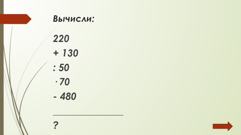 Вычисли:220+ 130: 50· 70- 480______________?