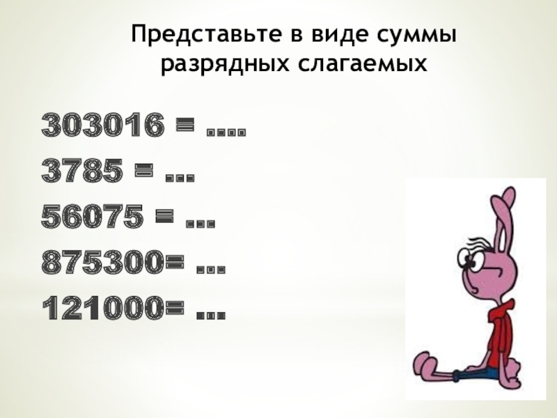 Слайд 9Представьте в виде суммы разрядных слагаемых