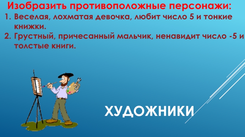 причесанный мальчик, ненавидит число -5 и толстые книги.