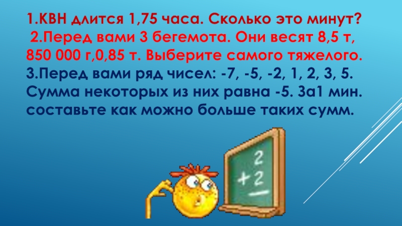 Слайд 41.КВН длится 1,75 часа. Сколько это минут?