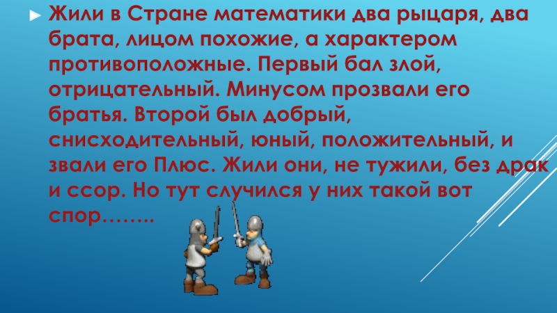 Слайд 6Жили в Стране математики два рыцаря, два брата, лицом похожие, а