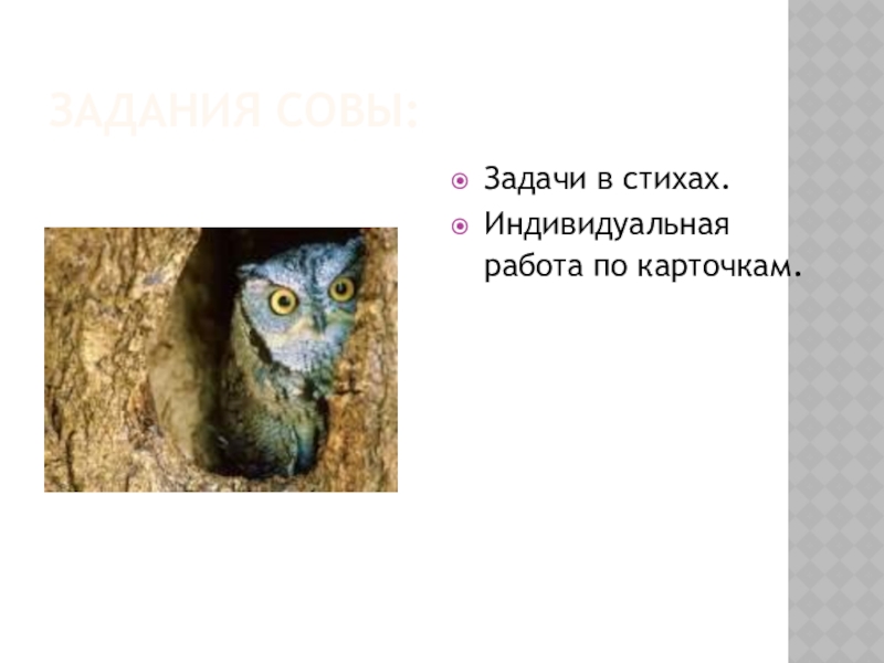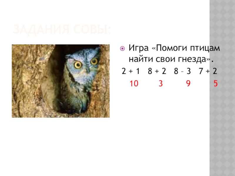 Слайд 9ЗАДАНИЯ СОВЫ: