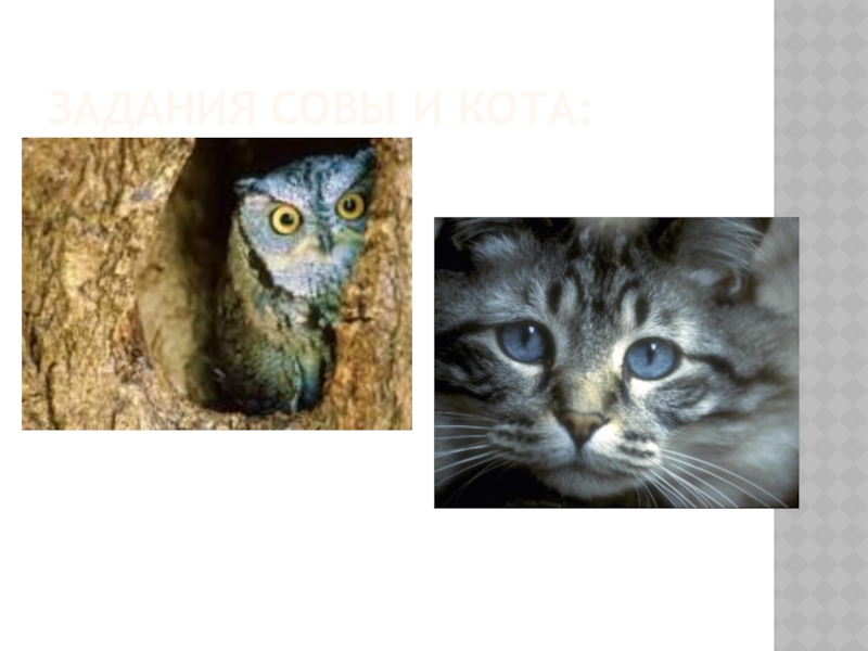 Слайд 15ЗАДАНИЯ СОВЫ И КОТА: