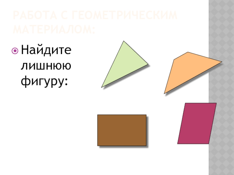 РАБОТА С ГЕОМЕТРИЧЕСКИМ МАТЕРИАЛОМ:Найдите лишнюю фигуру: