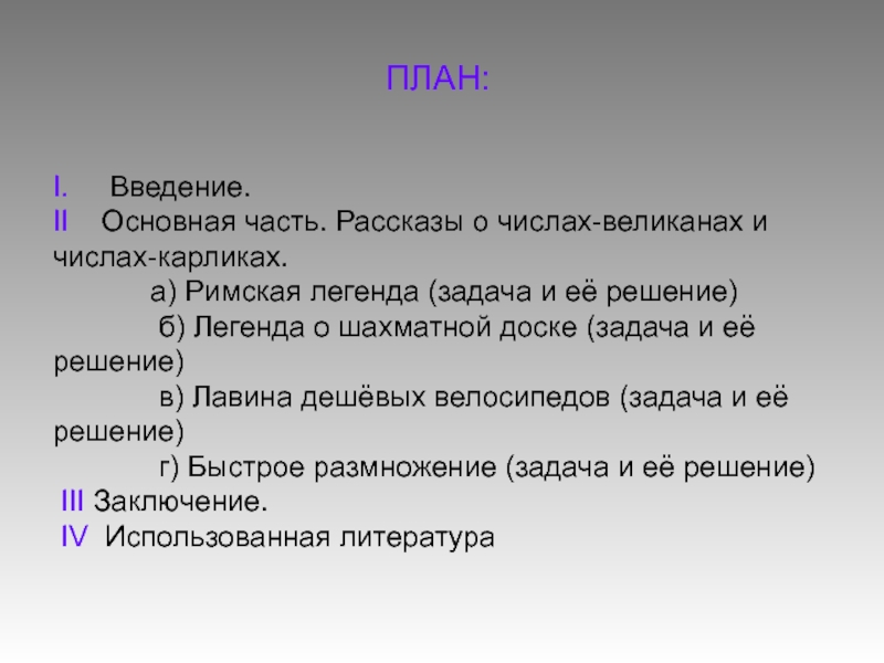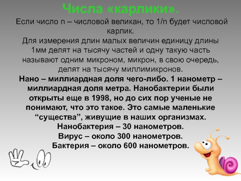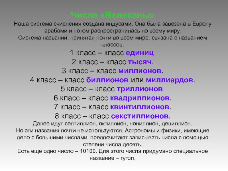 II Основная часть. Рассказы о числах-великанах и числах-карликах.