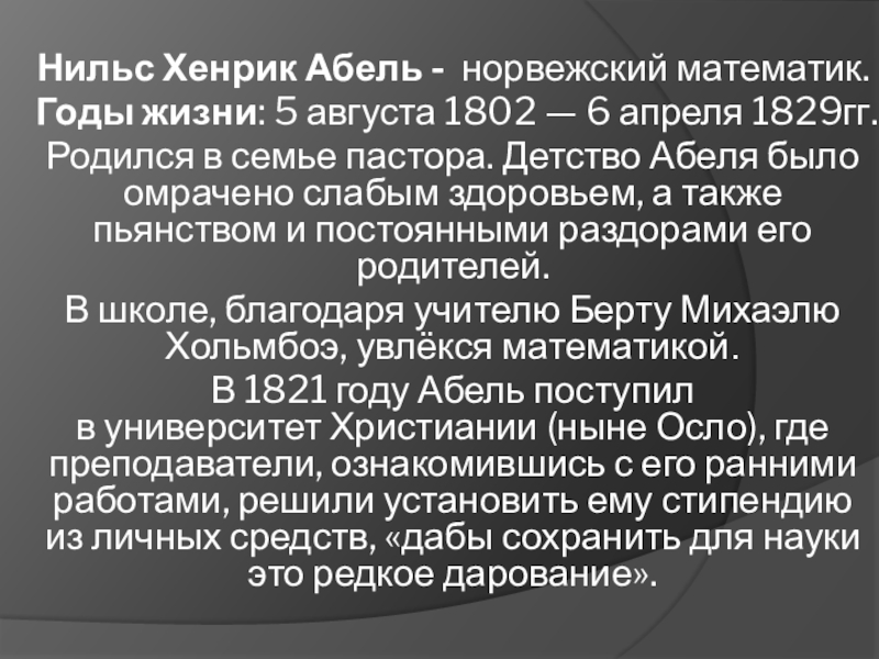 Слайд 13Нильс Хенрик Абель - норвежский математик.