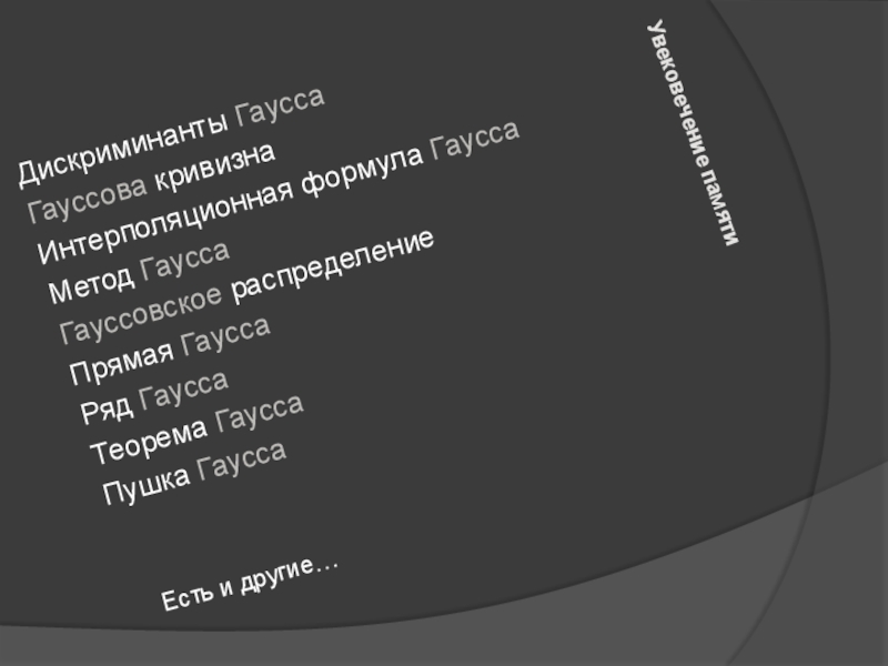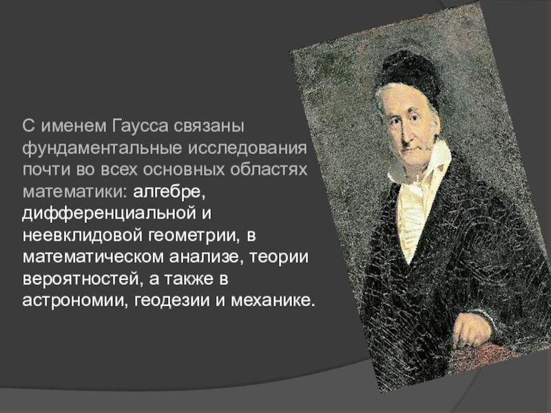 Слайд 31С именем Гаусса связаны фундаментальные исследования почти во всех основных областях