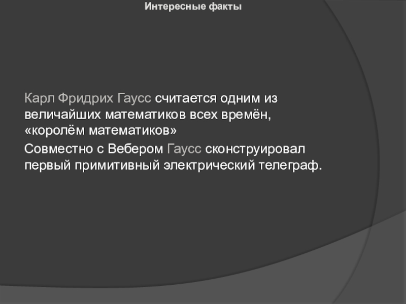 Совместно с Вебером Гаусс сконструировал первый примитивный электрический телеграф.