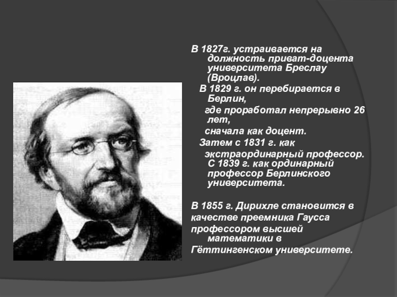 Слайд 22В 1827г. устраивается на должность приват-доцента университета Бреслау (Вроцлав).