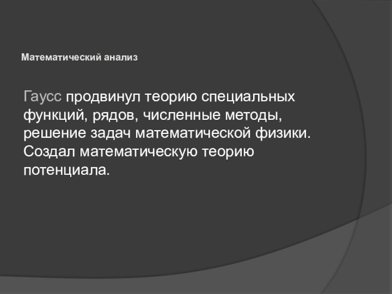 Гаусс продвинул теорию специальных функций, рядов, численные методы, решение задач