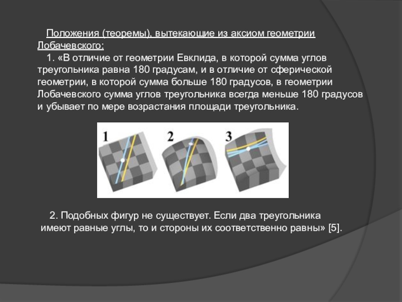 Слайд 10Положения (теоремы), вытекающие из аксиом геометрии Лобачевского: