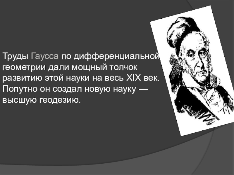 Слайд 40Труды Гаусса по дифференциальной геометрии дали мощный толчок развитию этой науки