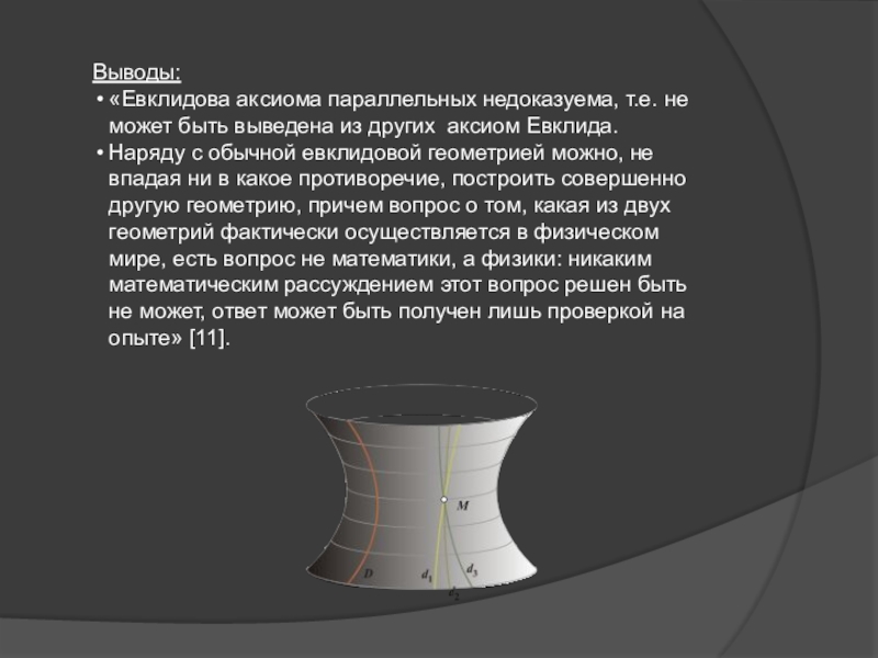 «Евклидова аксиома параллельных недоказуема, т.е. не может быть выведена из других