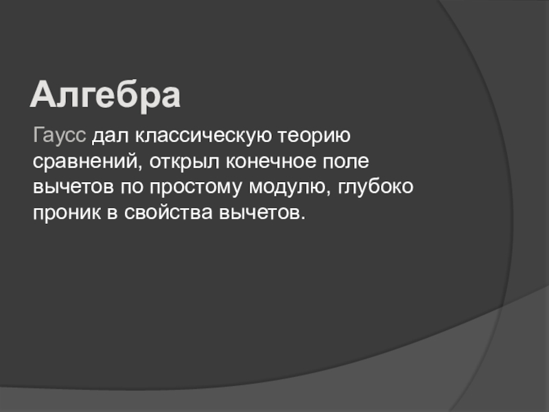 Гаусс дал классическую теорию сравнений, открыл конечное поле вычетов по простому