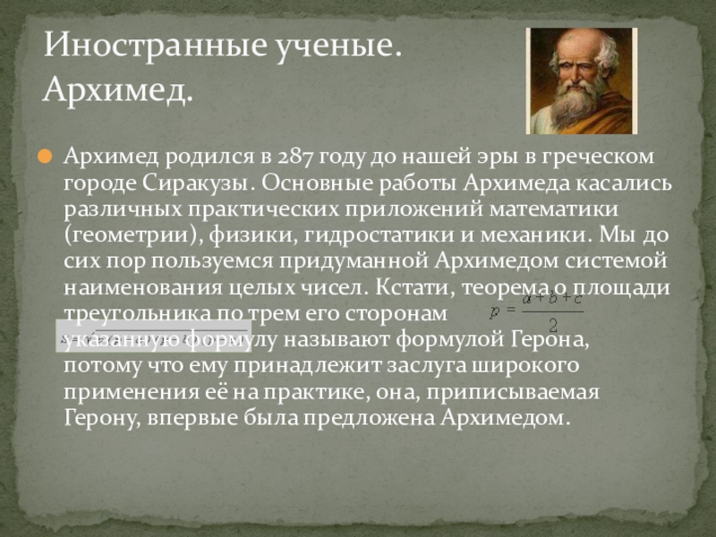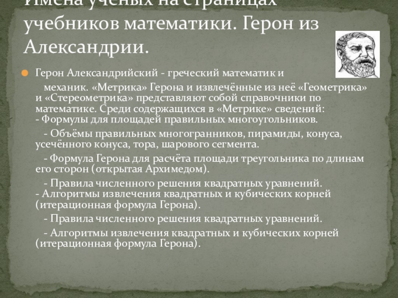 Имена ученых на страницах учебников математики. Герон из Александрии.