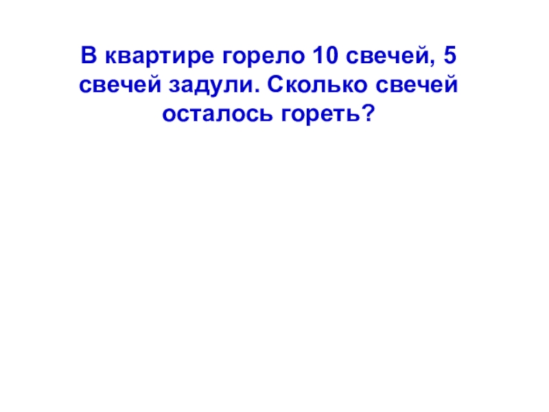 Слайд 4В квартире горело 10 свечей, 5 свечей задули. Сколько свечей осталось