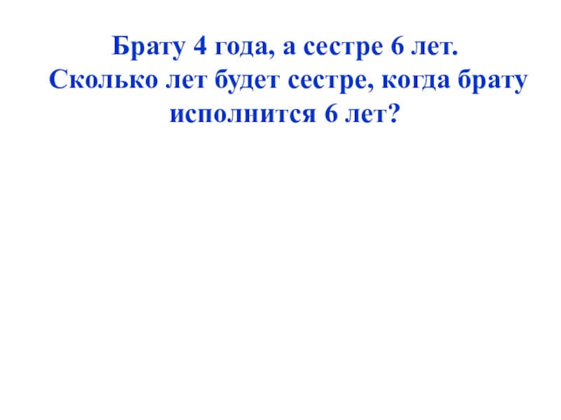Брату 4 года, а сестре 6 лет. Сколько лет будет сестре, когда брату исполнится 6 лет?