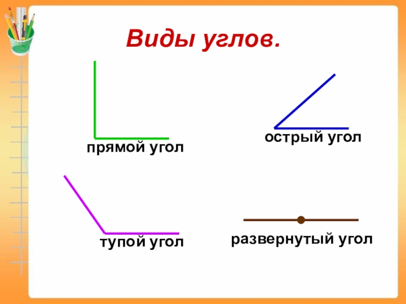 Презентация, доклад по математике на тему Виды углов (2 класс)