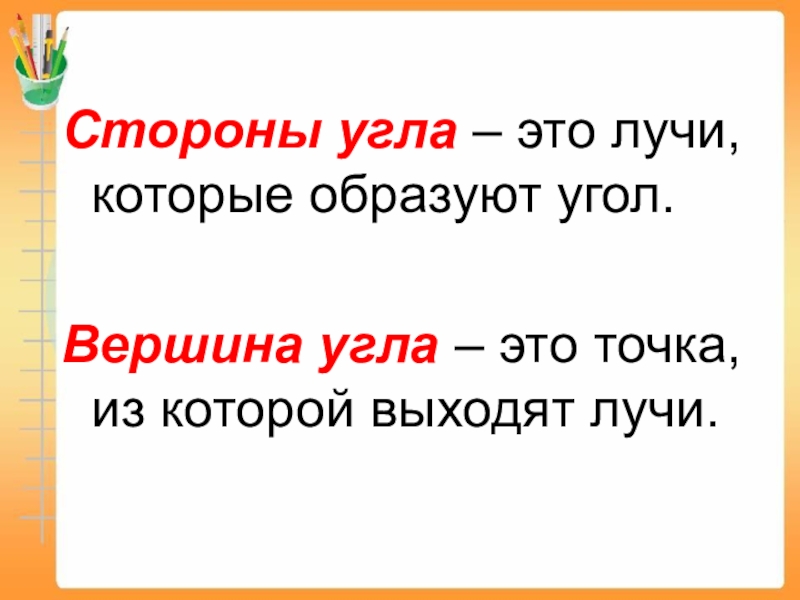 Слайд 6Стороны угла – это лучи, которые образуют угол.