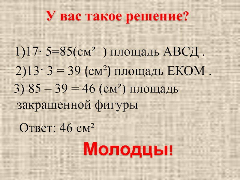 3) 85 – 39 = 46 (см²) площадь