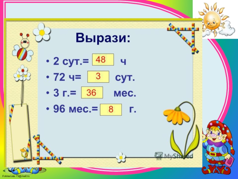 Презентация, доклад по математике на тему Время.Сутки 2 класс