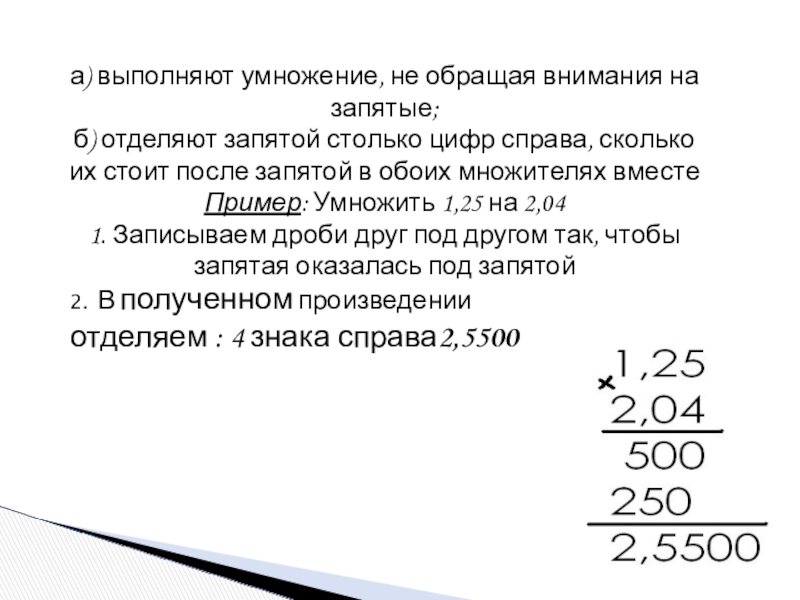 2. В полученном произведении отделяем : 4 знака справа2,5500