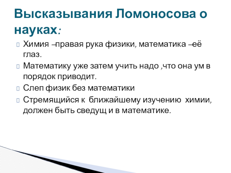 Высказывания Ломоносова о науках: