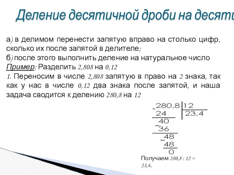 Получаем 280,8 : 12 = 23,4.