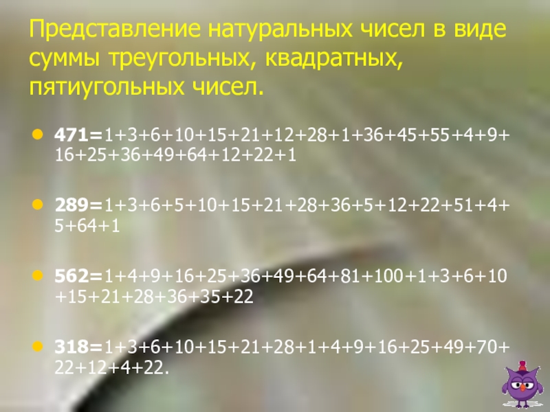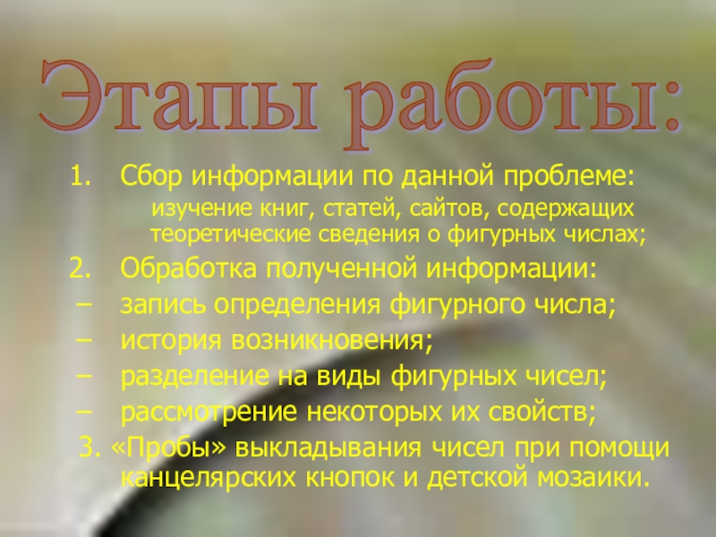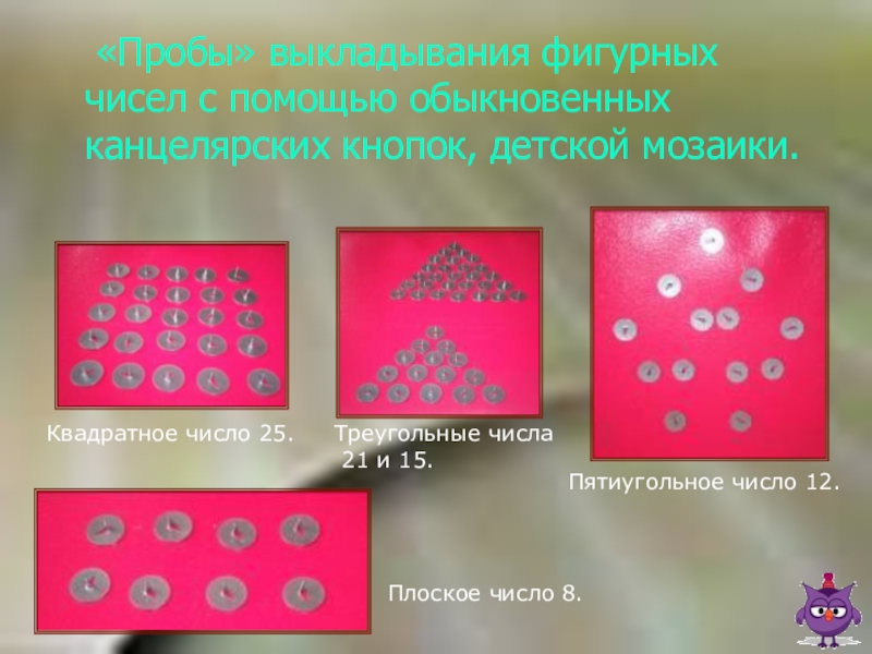 фигурные числа, действительно, существуют: они выкладываются в виде геометрических фигур;