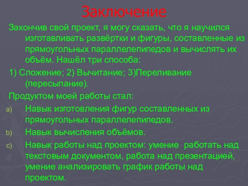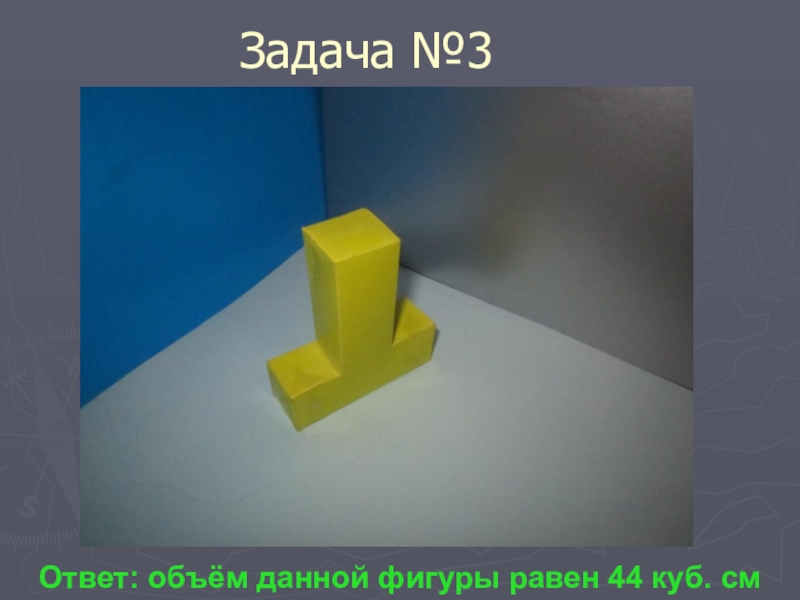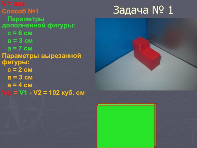 *найти возможность достроить или разделить фигуру на прямоугольные параллелепипеды;